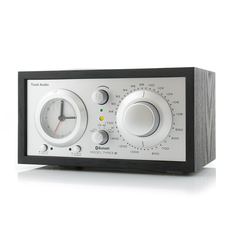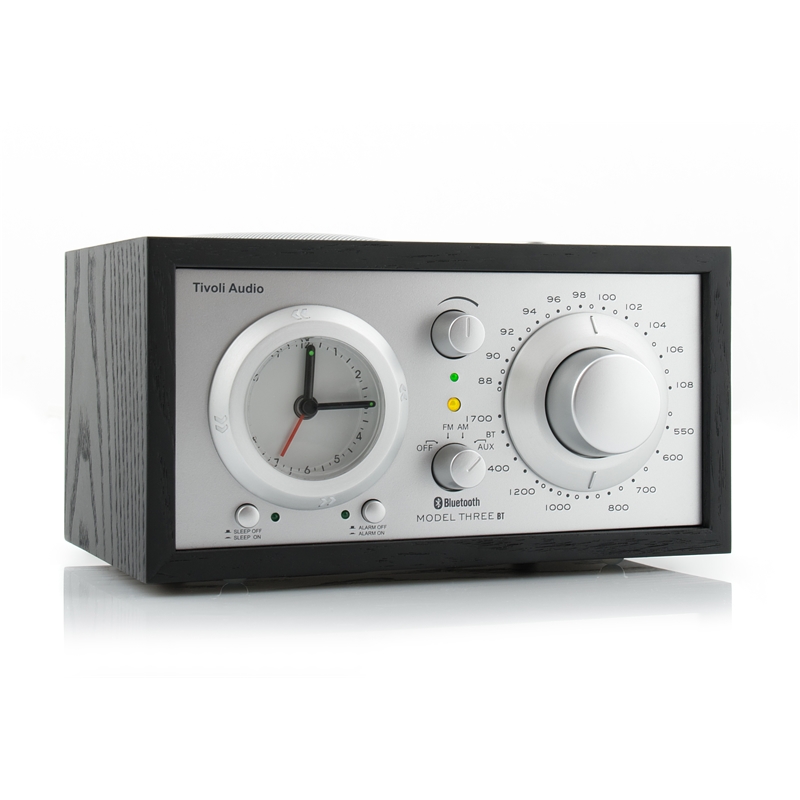 Das Model Three BT bringt den exzellenten Klang des legendären Model One auch in das Schlafzimmer. Die wahlweise über den eingebauten UKW Tuner oder per Bluetooth. Die klassische Analoguhr mit Alarm- und Schlummerfunktion ist dezent beleuchtet und machen das Model Three BT zum idealen Radiowecker für jeden Nachttisch. AM/FM Radio mit Bluetooth Funktion. 7,6 cmm Top-Firing Lautsprecher mit Bassreflexöffnung. Anschlüsse: AUX-Eingang, MIX-Eingang, Rec-Ausgang, Kopfhörerbuchse, Anschluss ext. Lautsprecher, Subwoofer-Ausgang.