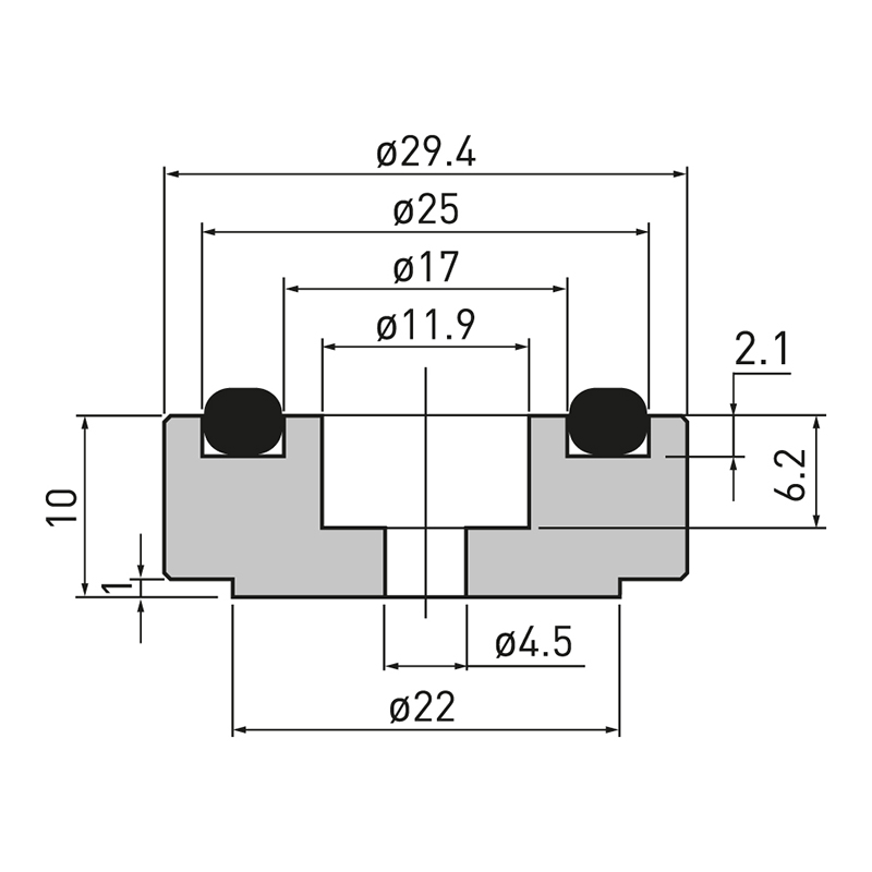 Maße: | Gerätefuß (ohne Gummierung) ca. (Durchmesser x Höhe) 30 x 10 mm mit Gummierung ca. 11.5 mm Mittelbohrung ca. 4.6 mm |